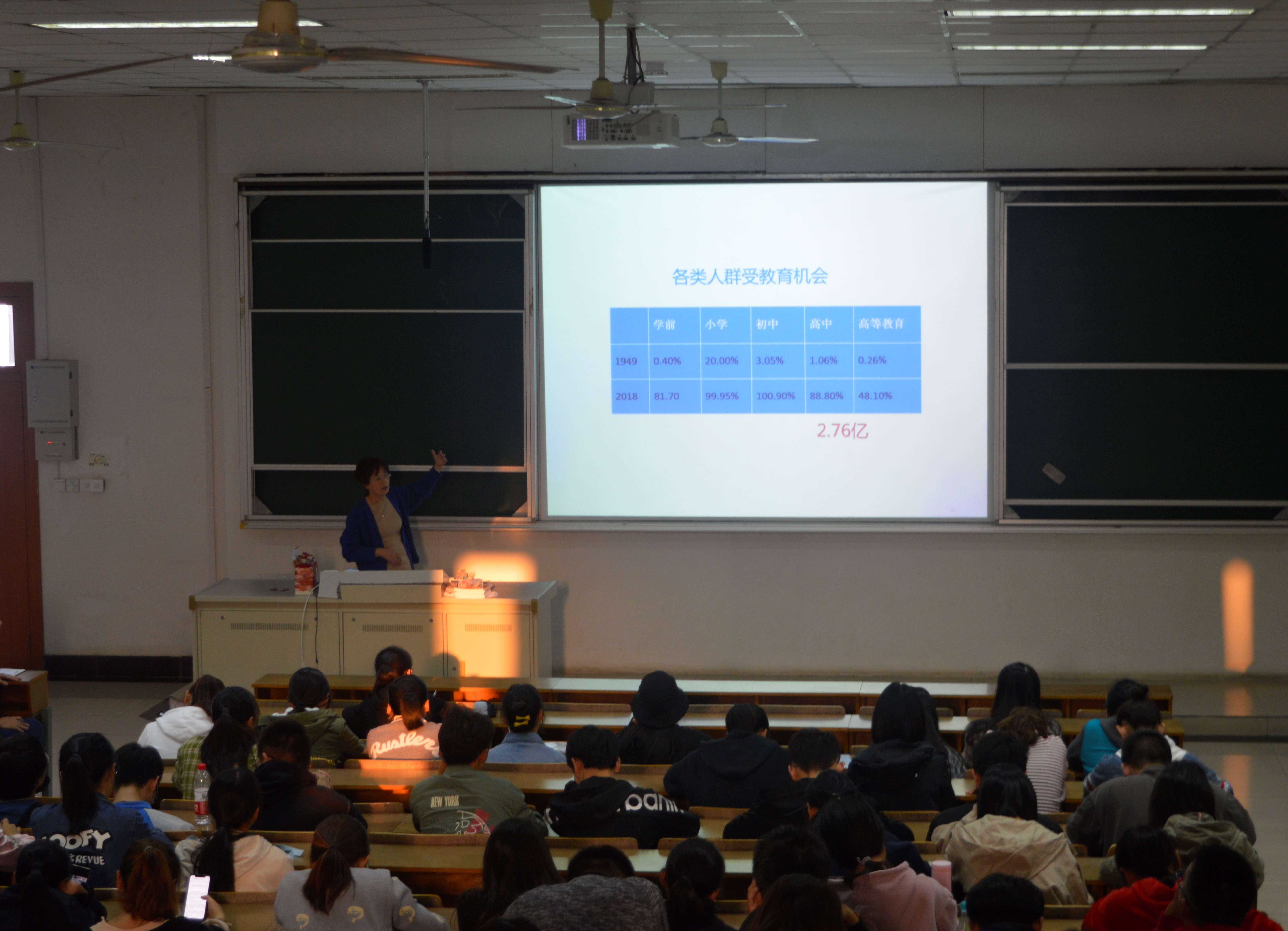 王瑛教授结合自身的成长经历和教育经历展开“初心故事”,讲述了通过知识改变命运的人生路径。同时,回顾了新中国成立70年以来,我国教育事业取得举世瞩目的成就:九年制义务教育推动了我国基础教育的普及,促进了国民素质的整体提升,实现了“有学上”的教育目标;高等教育体系得以构建,实现了由精英化向大众化的跨越发展。在新的形式和要求下,如何从“有学上”转变为“上好学”,促进优质教育资源的合理分配,充分发挥教育对于社会阶层流动的推动作用成为我们需要努力攻克的课题。最后,王瑛教授鼓励新生们结合自身实际,树立目标,努力学习科学知识,坚持奋斗,将个人价值的实现与社会发展需求相融合。