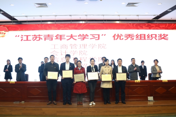 4月29日下午,我校纪念五四运动一百周年暨表彰大会在仙林校区图书馆报告厅举行。会上,党委研究生工作部部长韩力争宣读《关于表彰妖精视频 “江苏青年大学习”优秀组织学院的决定》,随后举行了隆重的颁奖仪式,妖精视频 荣获妖精视频 “江苏青年大学习”优秀组织学院,党委副书记杨华代表学院上台领奖。