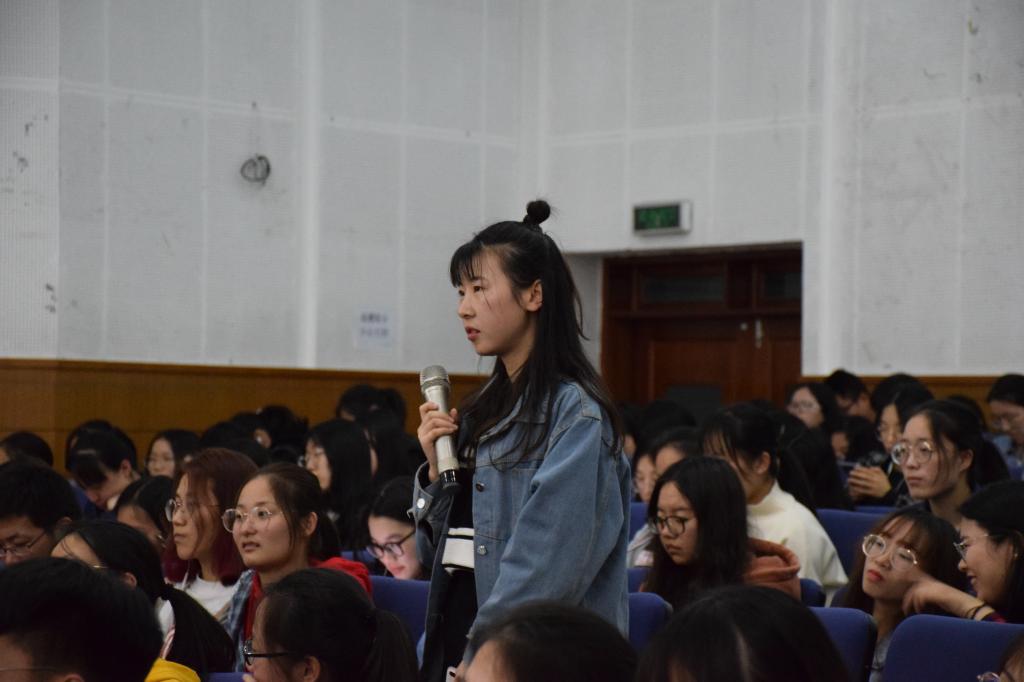 最后,在提问交流环节,三位同学结合自身经验,围绕“如何平衡第一和第二课堂、如何有效与企业联系和对接”等问题进行了详细解答,帮助大一新生了解了大学生创新创业大赛以及暑期社会实践活动的意义和价值,进一步提高了大学生参与各类创新实践活动的积极性。