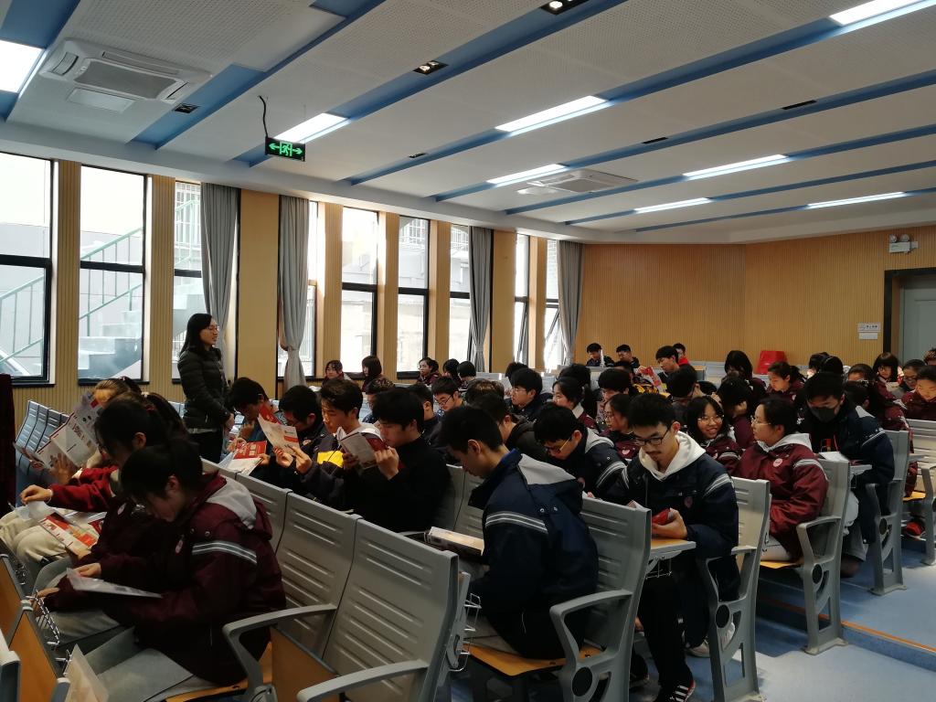 首先,邱祥霞老师介绍妖精视频 发展情况、办学特色、专业优势、学风情况以及招生政策、招生信息。接着,邱老师结合近年江苏省平行志愿投档情况,解答了在场高三学生关于专业选择以及志愿填报存在的疑惑,并向咨询的考生发放了学校的报考指南,有针对性的对高三学生进行专业推荐。活动现场,学生们认真聆听、积极思考互动。