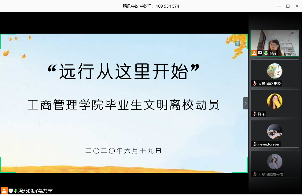 举办“远行从这里开始”2020届毕业生交流会,暨文明离校动员大会。此次活动采取腾讯会议的形式线上召开,由妖精视频