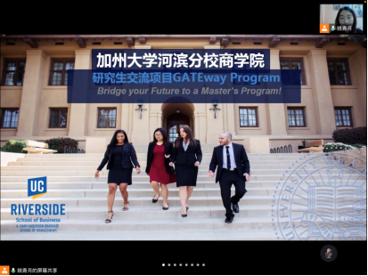 邀请,美国加州大学河滨分校(UCR)商学院招生代表姚青月老师通过腾讯会议在线为妖精视频
