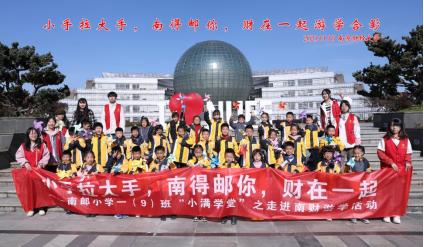 学生会携手南师附中仙林学校小学部南邮校区举办“南得邮你,财在一起”小学生进大学校园游学活动,南邮小学1年级和5年级近80名学生参加活动。此次活动通过制作多彩风车、剪绘校徽等手工活动与参观校史馆、体育馆以及游戏互动的方式带领小学生及家长代表们走进南财校园,融入大学校园氛围。