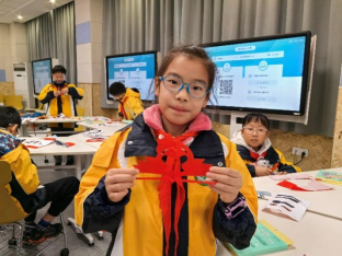 志愿者们以羊续悬鱼的故事为引入,向五年级3班的小朋友们介绍了中国货币的起源与发展和剪纸艺术,用南财深厚而独特的文化气息激发着同学们的热情。在共同剪绘古铜币和南财校徽的过程中,小朋友们都全神贯注、小心仔细地剪裁着手中的图案。很快,在双手与巧思的碰撞下,小朋友们将一个个精致的校徽与古铜币举起,脸上洋溢着自信的笑容。在锻炼动手能力的同时,同学们对于货币文化有了更深的认识。