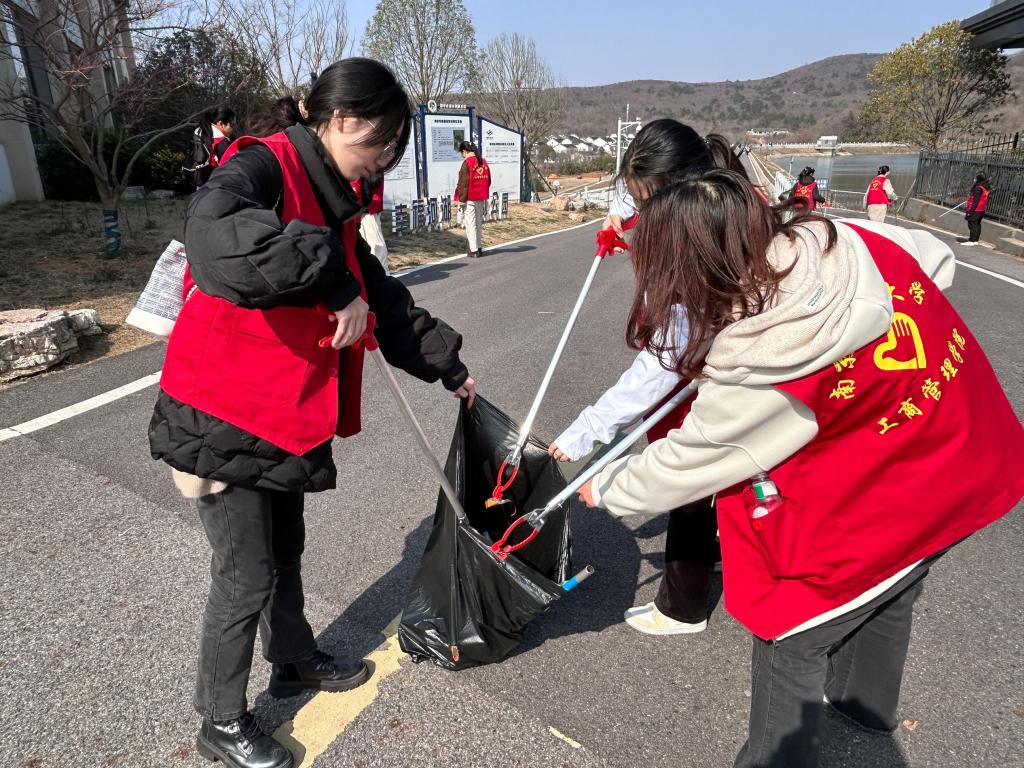 活动伊始,志愿者们来到桦墅村党群服务中心,与当地负责人进行了交流。随后,负责人给志愿者们分发了垃圾袋和垃圾捡拾器,并说明了捡拾垃圾的路线。志愿者们自行分成四个小组,开始了社区清理之旅。一路上,志愿者们认真地捡拾着地上的垃圾,小心翼翼地放入垃圾袋中。