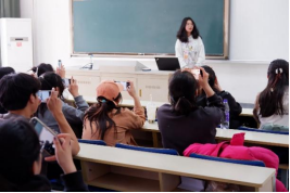 随后的实践练习过程中,由新闻部志愿者在台上扮演老师,同学们进行实操练习,王语涵对同学们的照片进行了简要点评,进一步加深了同学们对培训内容的理解与记忆。
