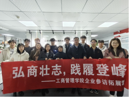党委副书记尹海燕,教师代表文婷、徐祖辉、陈婉及学生代表共同走进“正大杯”江苏赛区实训基地--江苏中创市场调研咨询有限公司开展企业走访活动。
