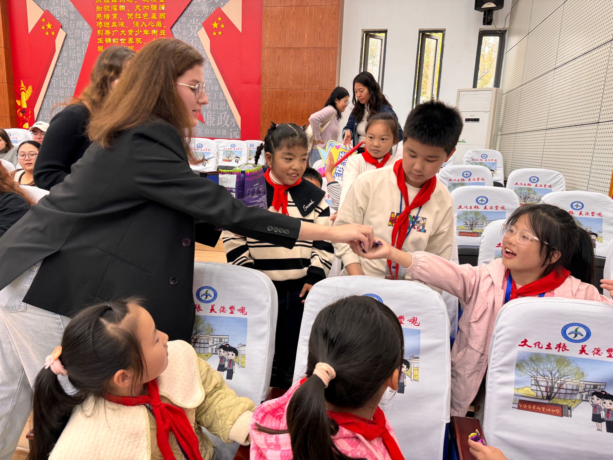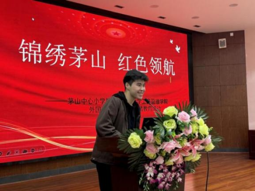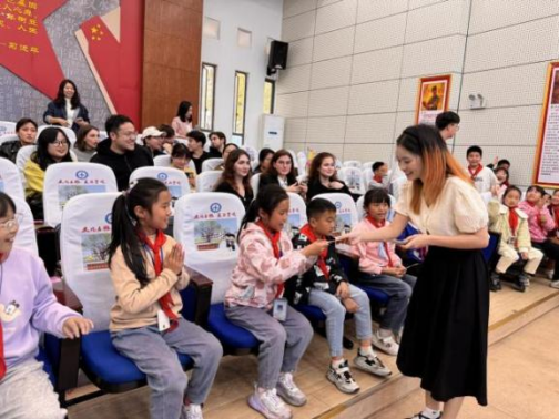 活动伊始,茅山中心小学党支部副书记徐继健代表茅山中心小学对南财师生们的到来表示热烈的欢迎。活动现场,来自俄罗斯、泰国、哈萨克斯坦等“一带一路”沿线国家的留学生们依次上台进行自我介绍,并通过PPT与孩子们分享来自世界各地的不同文化和故事。孩子们争先恐后回答留学生哥哥姐姐们的提问,并进行热情互动。