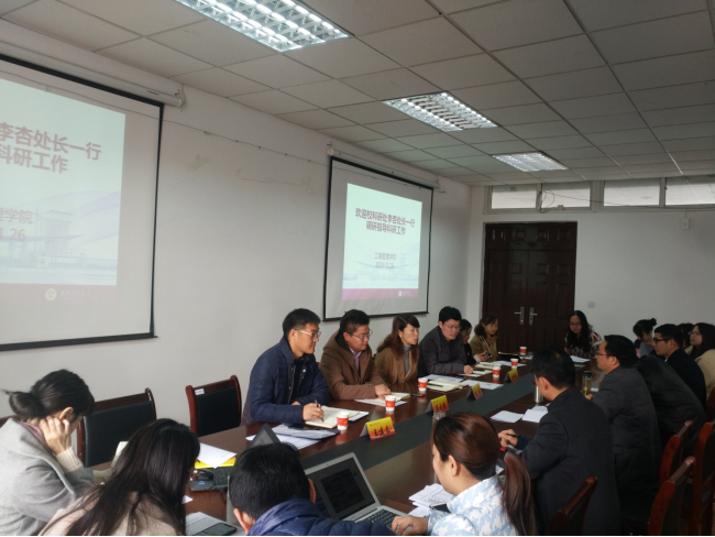 调研科研工作。学院党委书记万绪才,副院长奚国泉、万兴,系主任以及部分青年教师和科研秘书参加了座谈,座谈会由院长杨林主持。