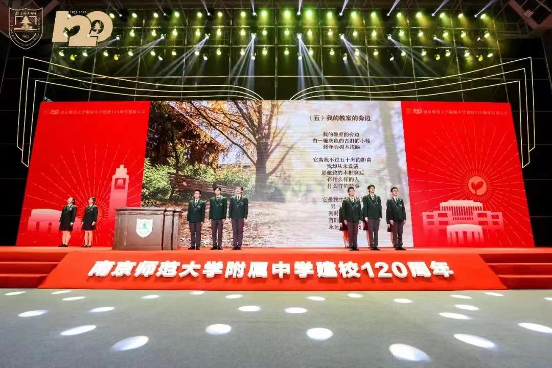11月19日上午,我校应邀参加南京师范大学附中建校120周年发展大会。副校级领导朱琴华应邀参会,校招生办主任孙菲、南京片区招生宣传副组长全真真、改发办综合管理科科长刘涛一同参会。