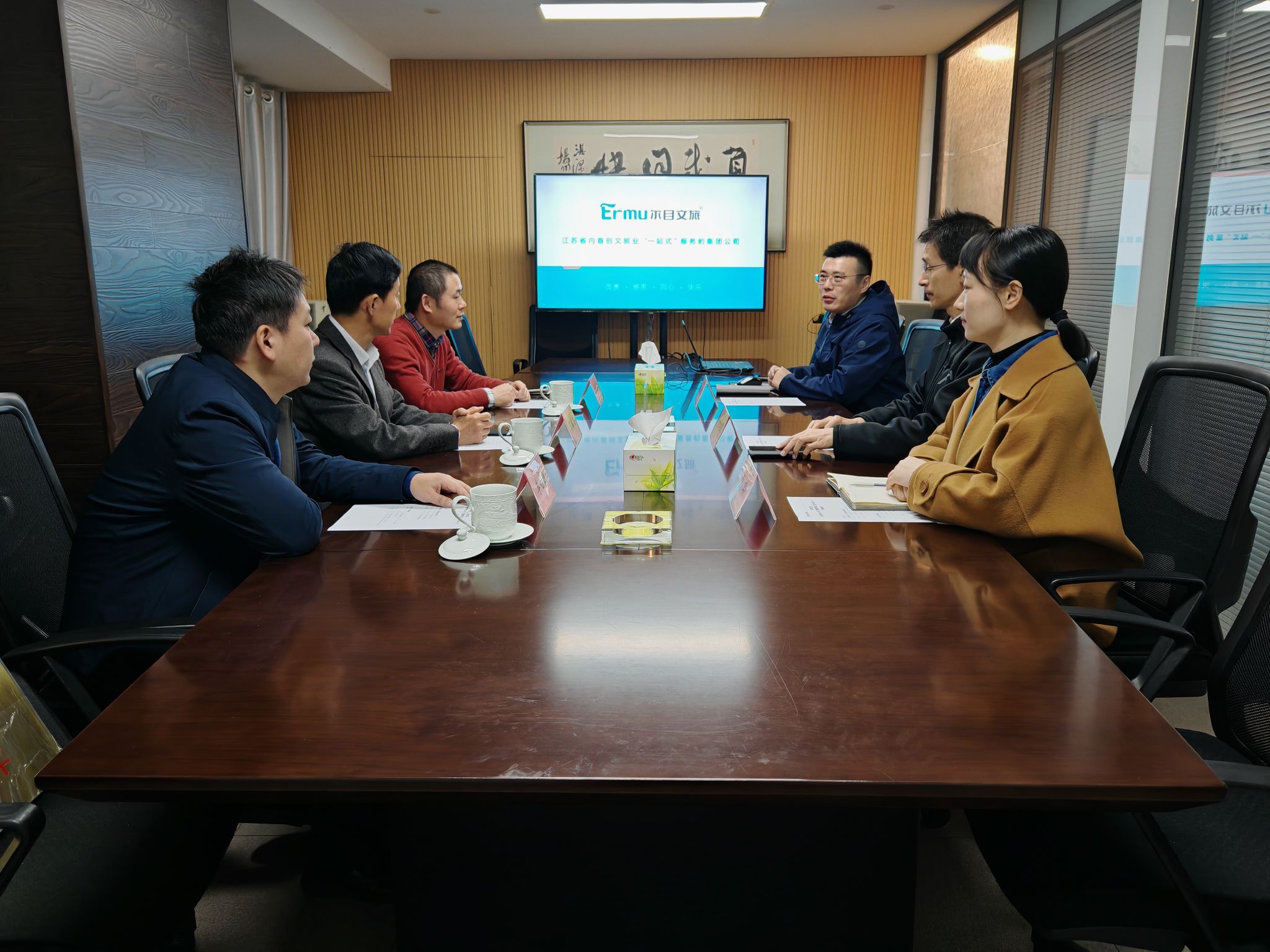 首先,万绪才院长一行参观了江苏尔目文化旅游发展集团有限公司相关职能部门及科研院所。在研究所万绪才院长向江苏尔目文化旅游发展集团有限公司负责人介绍了妖精视频