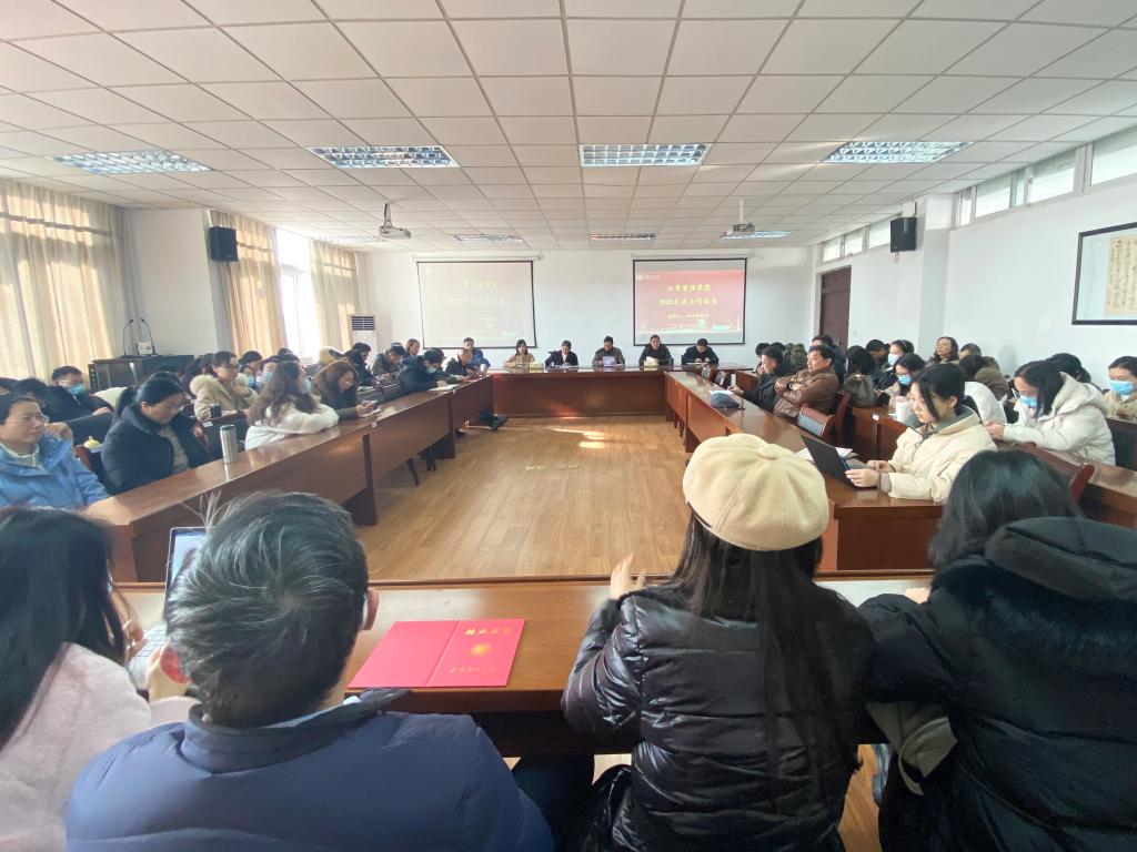 在德济楼408会议室召开2023年度教职工大会。学院全体教职工参加会议,会议由院党委书记张杰主持。