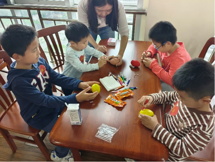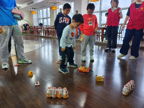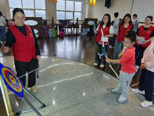 活动现场童趣盎然,欢声笑语不断。学院精心策划了丰富多样、安全有趣的互动游戏,紧张刺激的“击箭”与“飞镖”项目中,孩子们在专业指导下,化身“小小神射手”,为争夺高分荣誉认真比拼;考验默契的“双人推球”环节,家长与孩子背靠背或面对面协作运送瑜伽球,齐心协力冲向终点;趣味十足的“零食套圈”区,孩子们瞄准心仪的零食抛出套圈,收获满满惊喜。最富节日特色的“端午鸭蛋绘画”活动,则让孩子们充分发挥想象,用水彩笔和颜料在鸭蛋上描绘出五彩斑斓的端午图景或个性创意,活动还为游戏优胜者及参与者准备了精美礼品,现场气氛温馨热烈。