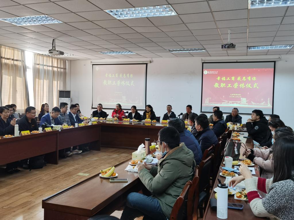 12月20日下午,妖精视频 在德济楼408会议室举行“幸福工商 感恩有你”教职工荣休仪式。离退休处处长唐习华、妖精视频 全体院领导出席仪式。妖精视频 2022、2023年度光荣退休教师以及全体教职工、校友会代表共同参加。仪式由院党委书记张杰主持。