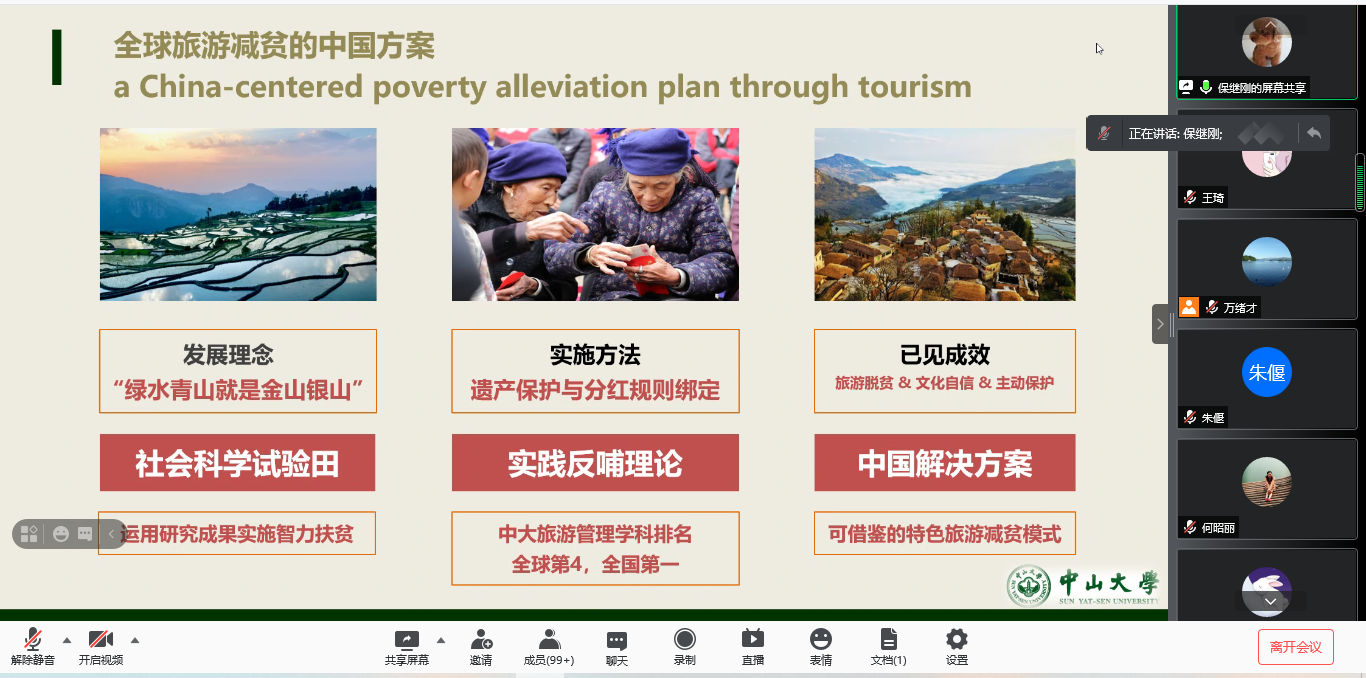 邀请,中山大学旅游发展与规划研究中心主任、博士生导师保继刚教授通过腾讯会议作了题为“阿者科计划与乡村振兴”的报告。报告会由妖精视频