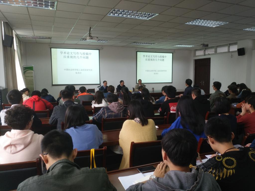邀请,《中国工业经济》杂志副社长、常务副主编张其仔和资深编辑覃毅一行在仙林校区德济楼408会议室作主题为“谈谈学术论文的写作与发表”的学术报告分享。报告会由妖精视频