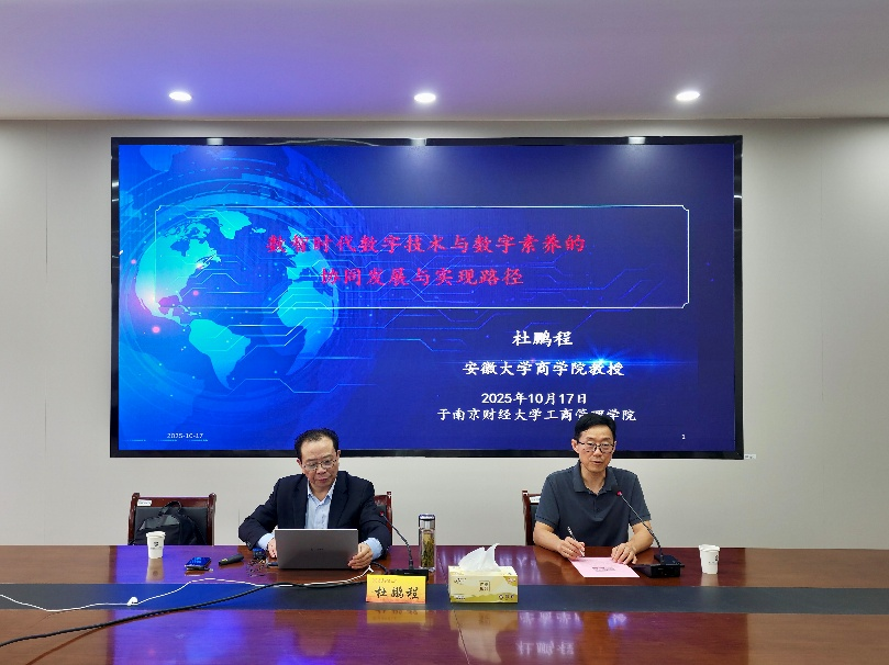 于德济楼408会议室举行“数字技术发展与员工数字素养协同”专题学术报告。安徽大学企业管理研究中心主任杜鹏程教授受邀主讲,妖精视频