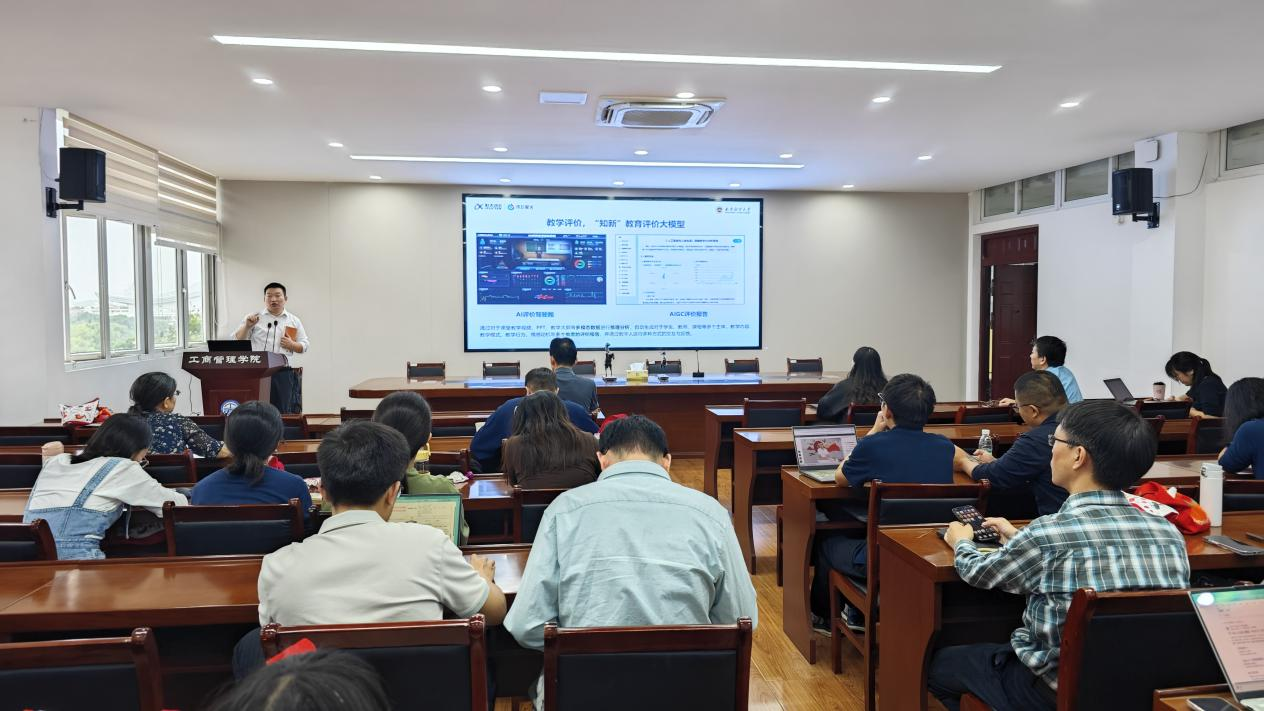 在德济楼408会议室举办“AI赋能课程建设与课堂教学”专题讲座。本次讲座特邀科大讯飞大数据工程师、江苏大区咨询总监李卫东老师担任主讲人,学院副院长张文勤主持,全体教师参会。