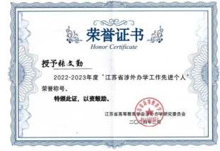 副院长张文勤喜获2022—2023年度“江苏省涉外办学工作先进个人”后,5月21日上午,我校在仙林校区行政楼二楼报告厅召开的国际化重点工作推进会中,妖精视频